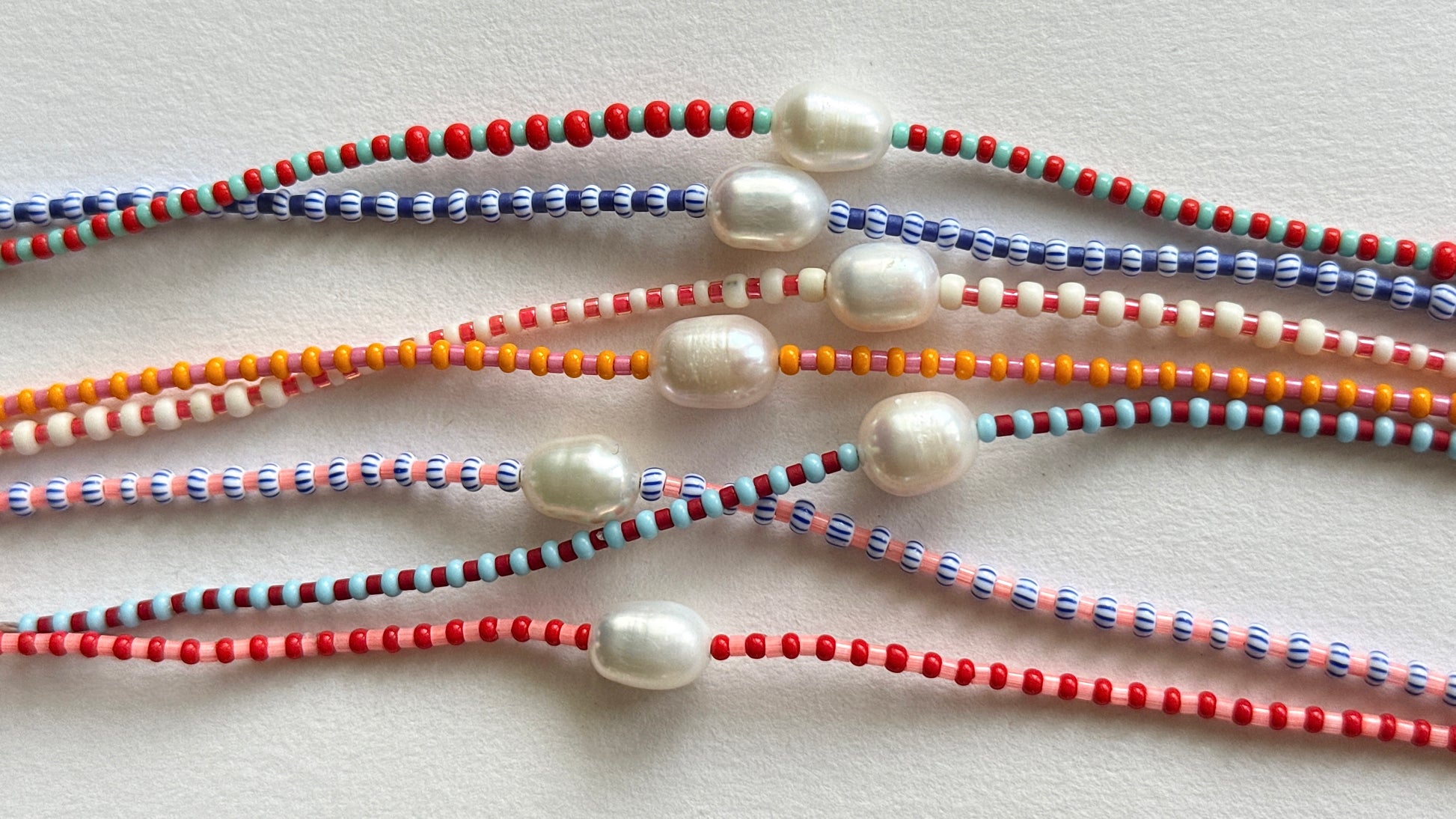 By the Sea 2.0 brings fresh new colourways crafted with fine Japanese beads, finished with a single freshwater pearl.