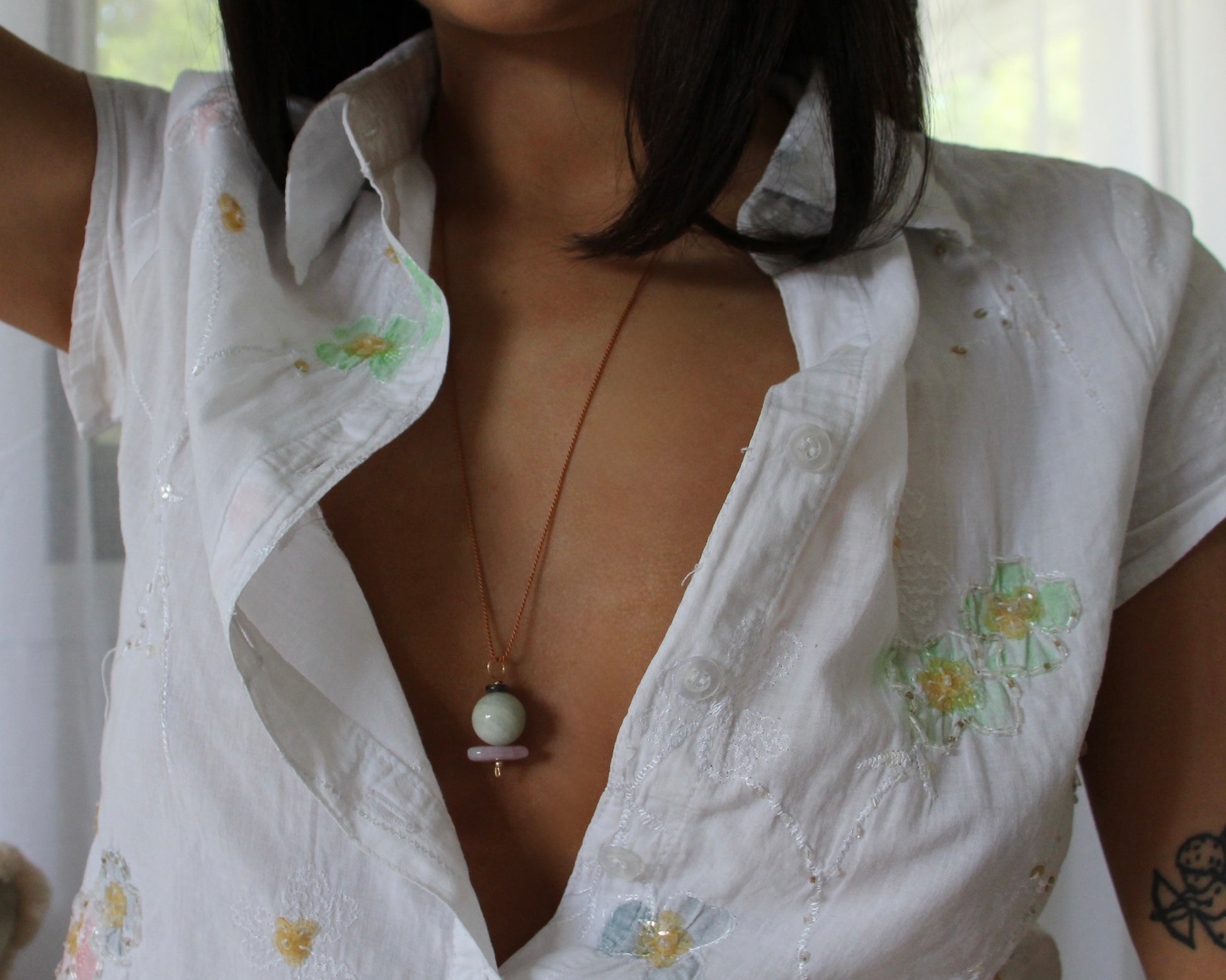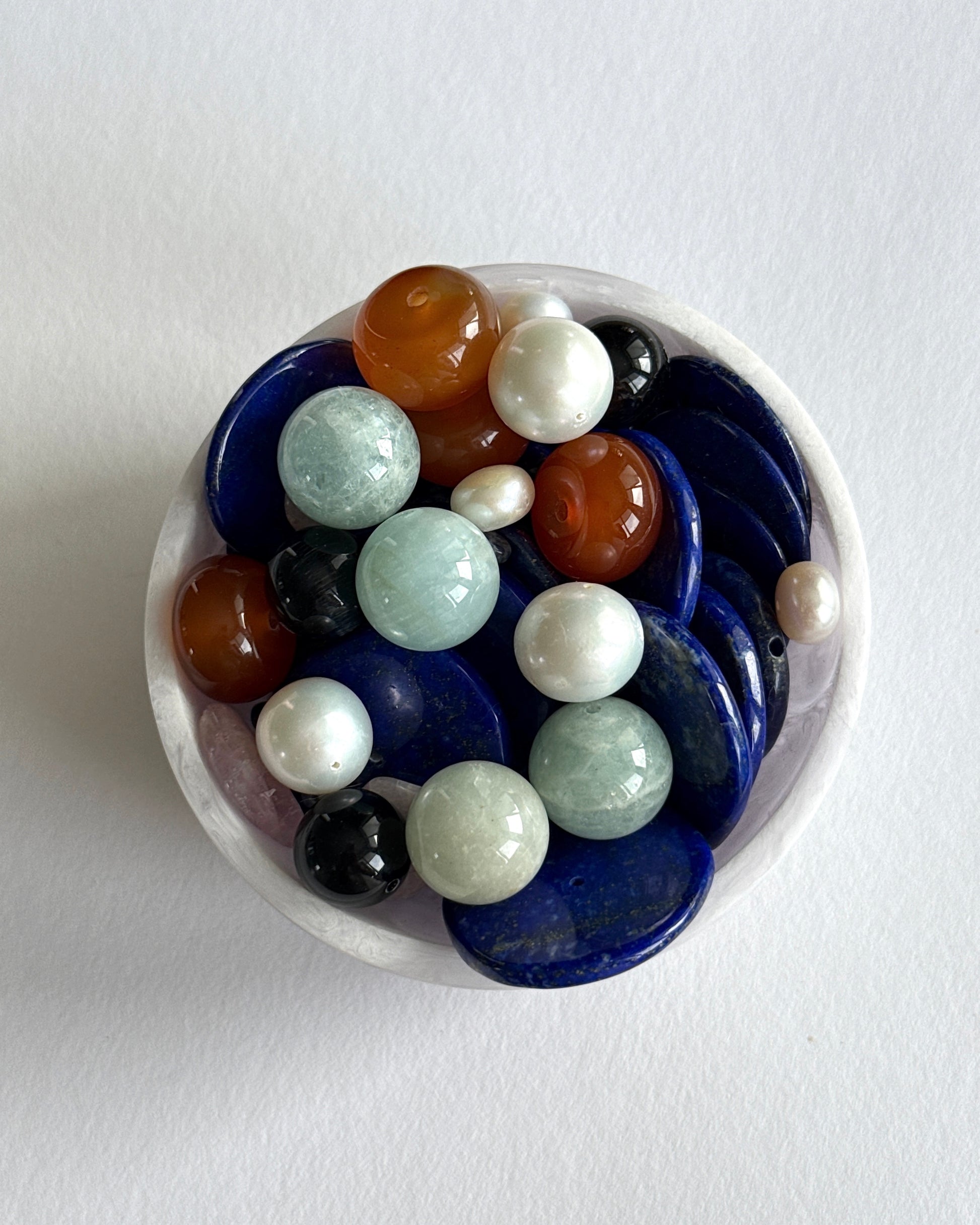 A playful mix of colour, texture and natural stones, strung on adjustable silk cord. An everyday piece handmade in our beachside studio.