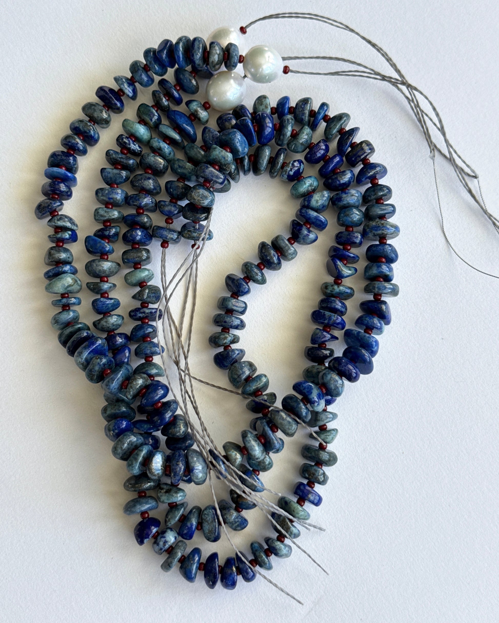 lapis chips + burgundy highlights featuring 1 freshwater pearl at clasp necklace